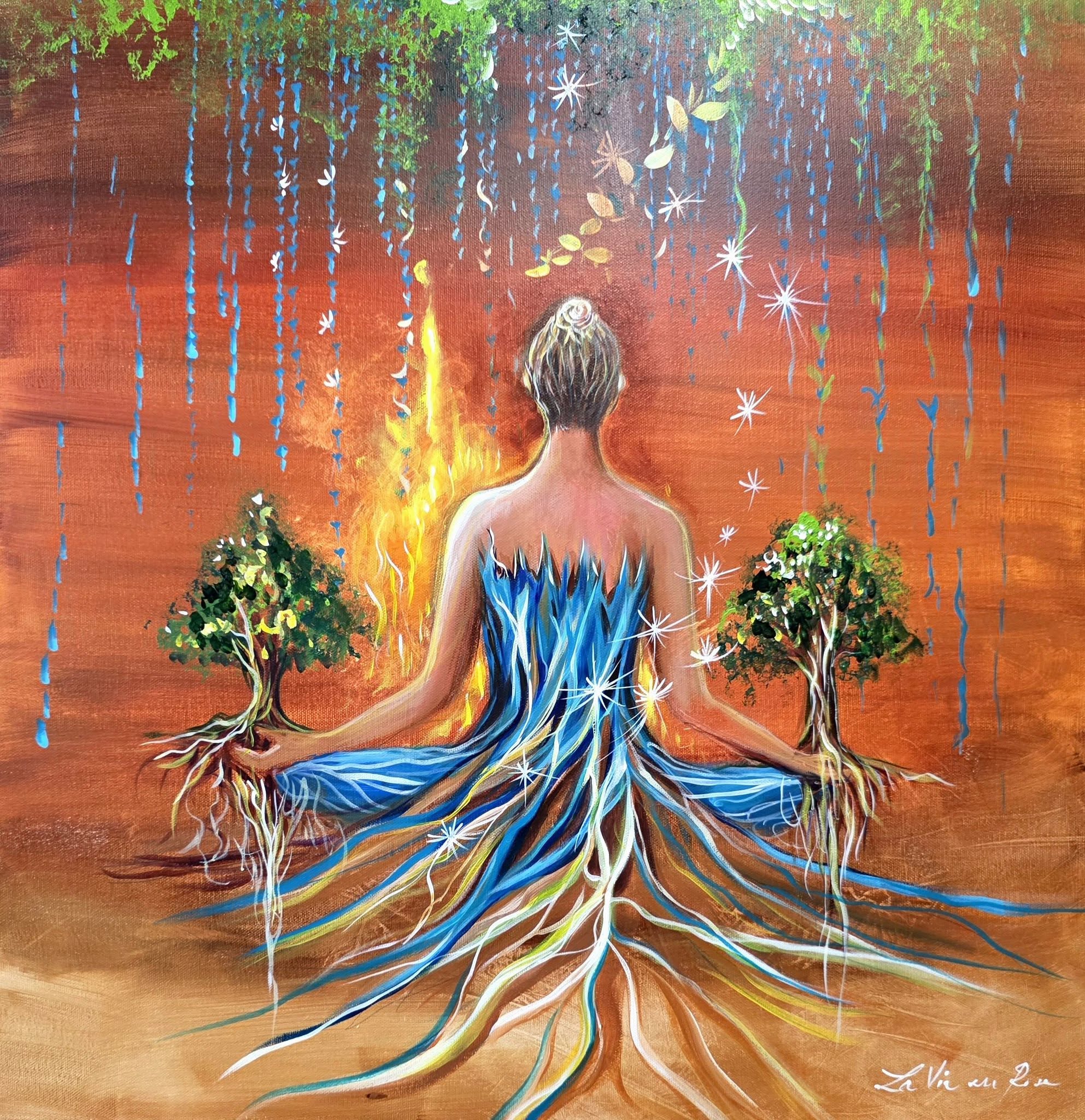 Attendez vous à de merveilleuses méditations visuelles douces et profondes…cette toile harmonise et ancre avec beaucoup de légèreté en traversant les âges, les époques…